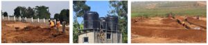 Mede dankzij onze sponsors hadden we de grond al kunnen aankopen, waar groenten op werden geteeld voor onze school. Ondertussen zijn de laatste groenten geoogst en zijn de bouwwerken gestart. De voorbereidende grondwerken zijn gebeurd, de muur aan de straatkant is gebouwd, evenals een technische ruimte, en we hebben stroom en de watertanks zijn geïnstalleerd en aangesloten op onze waterbron. Nu kunnen de funderingswerken voor de gebouwen beginnen.
